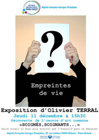 Présentation dans le cadre du vernissage de l'exposition "GIST, quel que chose en eux", du projet "Empreintes de Vie" avec le Profeseur Eric Raymond chef de service de cancérologie et le docteur David Guigou responsable de l'équipe de soins palliatifs. voire invitation